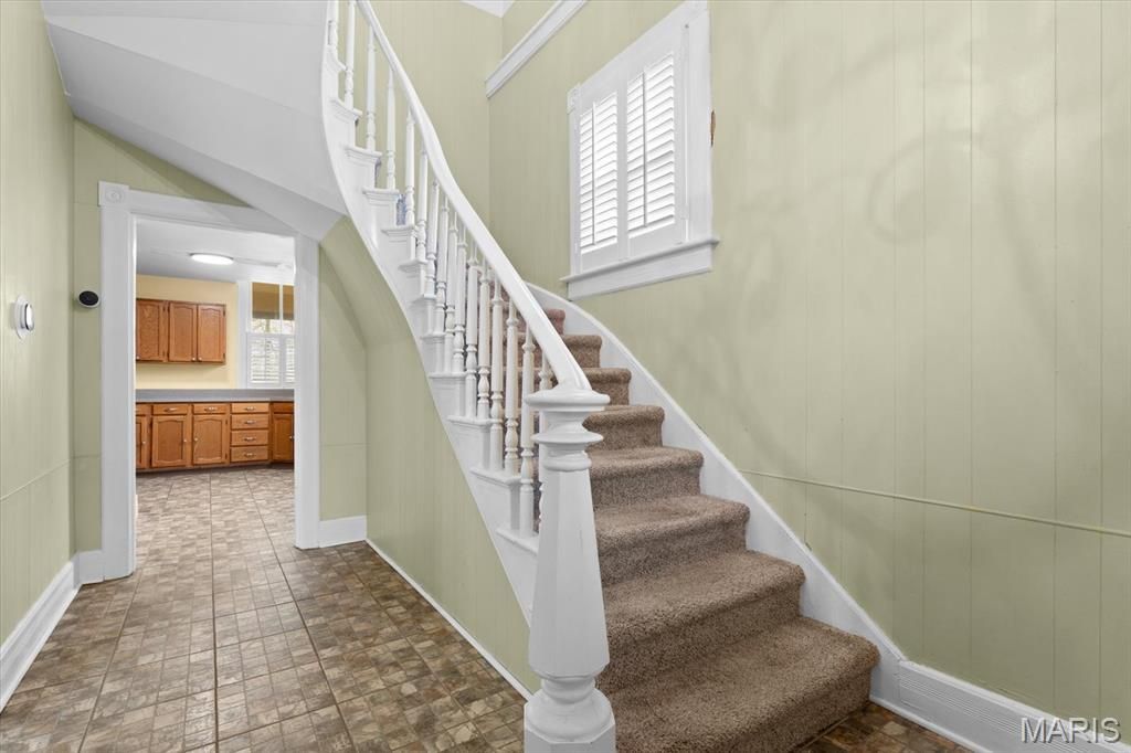 An absolutely lovely full brick bungalow in Historic Belleville updated throughout! The open ceramic tiled entry foyer showcases the stunning original half spiral staircase. Beyond the staircase is a sunny kitchen with ample cabinetry, ceramic tile flooring and ease of access to the basement. What a seamless and flowing floor plan as you enter the living room, private dining area both with wood veneer flooring and a centrally located charming half bath. Upstairs you will find 3 bedrooms and a full bathroom all with neutral carpeting and colors. The basement has plenty of room for storage items, a workshop or home gym. This is a corner-lot home which touts a huge backyard with a covered back porch for summer get togethers, your morning or evening me-time moments! Some of the updates include newer roof, HVAC, windows and water heater.